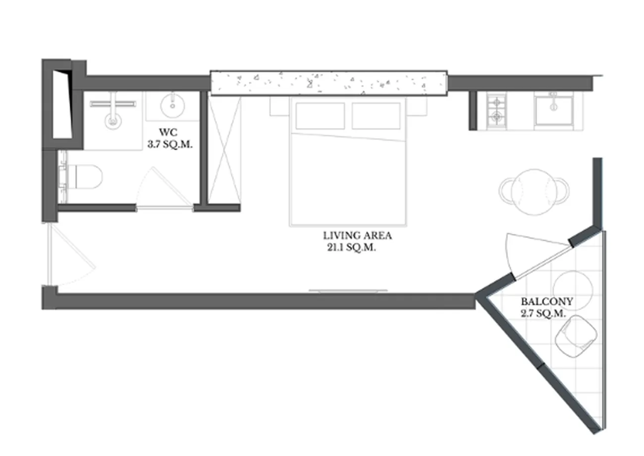 Lakonické otevřené studio spojuje obývací pokoj a kuchyňský kout (21.1 м²). Koupelna je kombinovaná. Navzdory kompaktnosti je v bytě vše, co potřebujete k pohodlí, včetně soukromý balkon - místo pro ranní kávu s mořským vánkem. ✅ Výhody: maximálně úsporný prostor, moderní uspořádání, světlý prostor a koncept připravený k nastěhování.