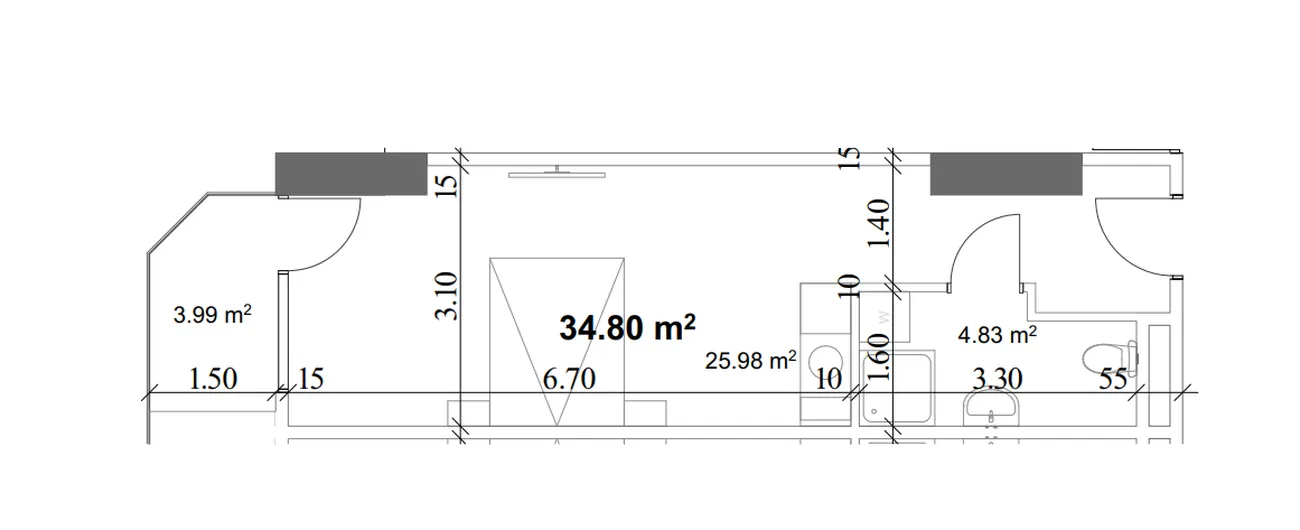 Moderní studio o celkové ploše 34,80 m² s balkonem o rozloze 3,99 m². Nachází se v jedinečném projektu Rezidence ELT OXY na Novém bulváru v Batumi - koncept life-hotelu vytvořený ve spolupráci s mezinárodním řetězcem Barceló Hotels.