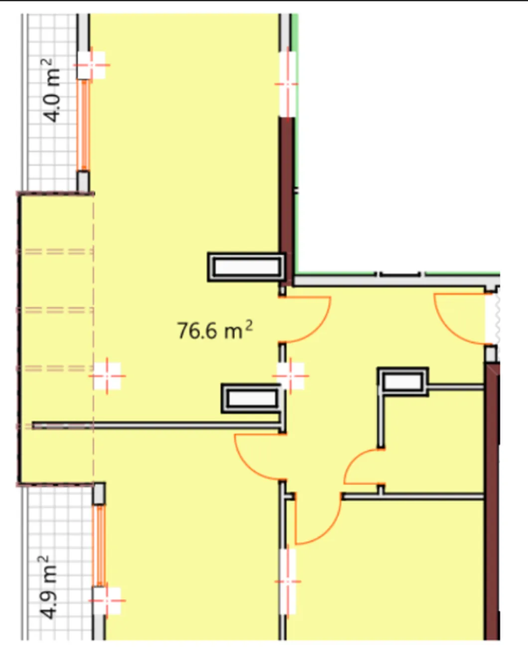 Dispozice zahrnuje útulnou obývací pokoj spojený s kuchyní, и dvě ložnicekterý poskytuje pohodlí a soukromí. ✅ Dva balkony (4,0 m² a 4,9 m²) vám umožní vychutnat si výhled a čerstvý vzduch a rozšířit užitný prostor. Velká okna zaplavují byt světlem a zdůrazňují jeho moderní formát.