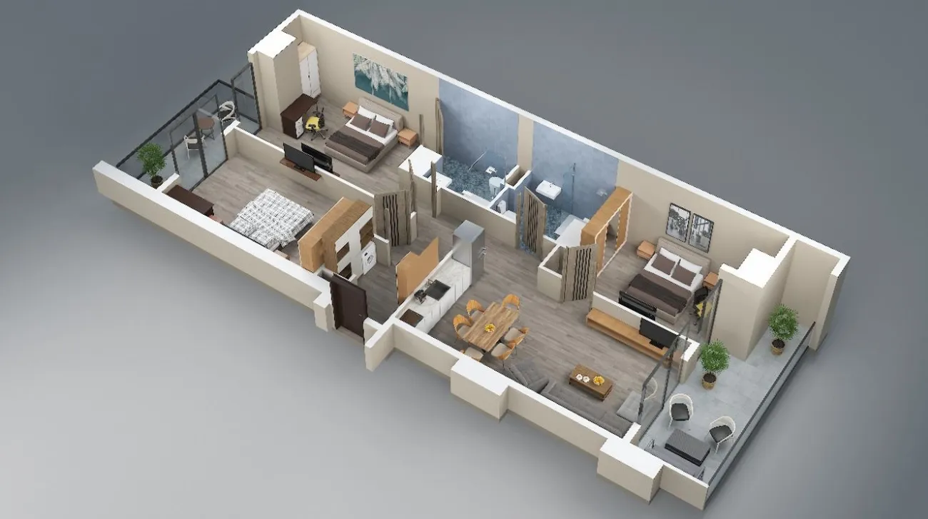 🔹 Rodiny s dětmi - Tři ložnice poskytují každému členu rodiny vlastní soukromí. Sousedství Bagrationi je klidné a zelené, v blízkosti jsou školky a školy. Ve dvoře komplexu je dětské hřiště a k moři dojdete za 15-20 minut.