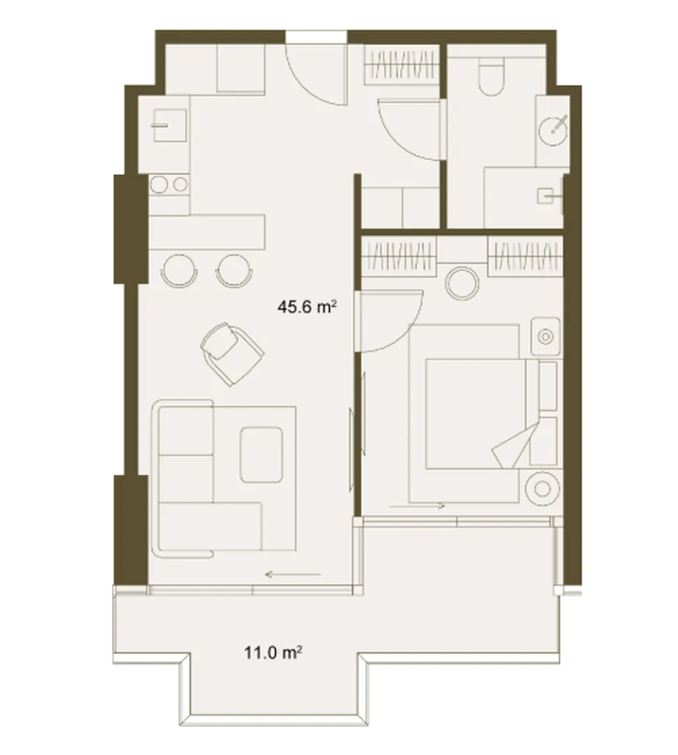 Stellen Sie sich vor, Sie trinken morgens eine Tasse Kaffee auf einer großzügigen Terrasse mit Blick auf das weite Meer und entspannen abends beim Rauschen der Brandung. Dieses geräumige Ein-Zimmer-Appartement im Projekt NEXT Gardens bietet ein seltenes Gleichgewicht zwischen einem gemütlichen Interieur und einer großzügigen Terrasse, die zu einem vollwertigen Teil Ihres Lebens im historischen Gonio wird.