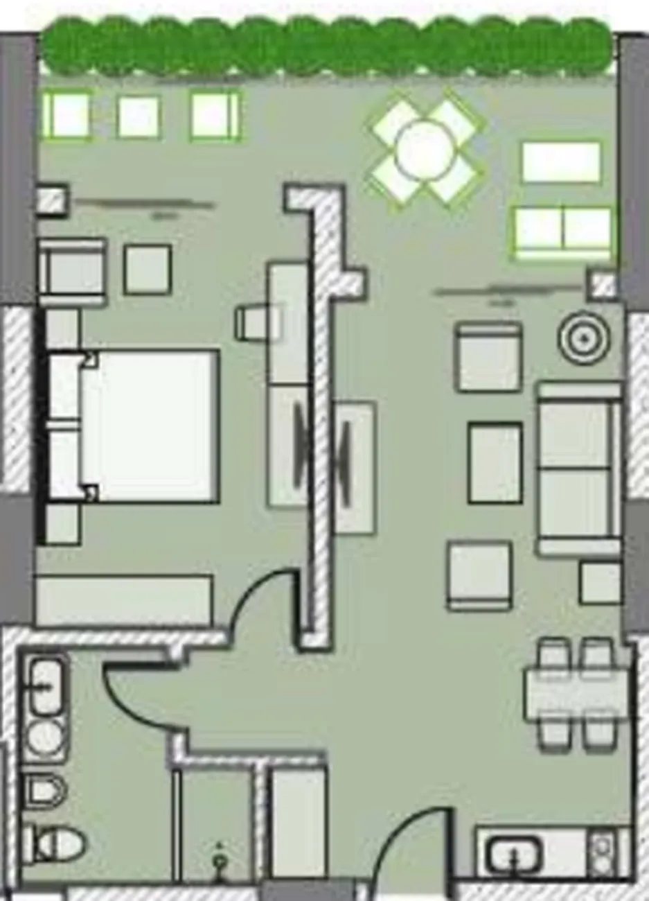 Die Wohnung bietet eine rationelle Aufteilung: ein isolierter Schlafbereich bietet Privatsphäre, und ein helles Wohnzimmer, kombiniert mit der Küche, schafft einen komfortablen Raum zum Ausruhen und Empfangen von Gästen. Der Balkon ist eine angenehme Ergänzung für den Morgenkaffee oder die abendliche Entspannung. Große Fenster sorgen für viel natürliches Licht, und die schlüsselfertige Ausführung ermöglicht es Ihnen, sofort einzuziehen.