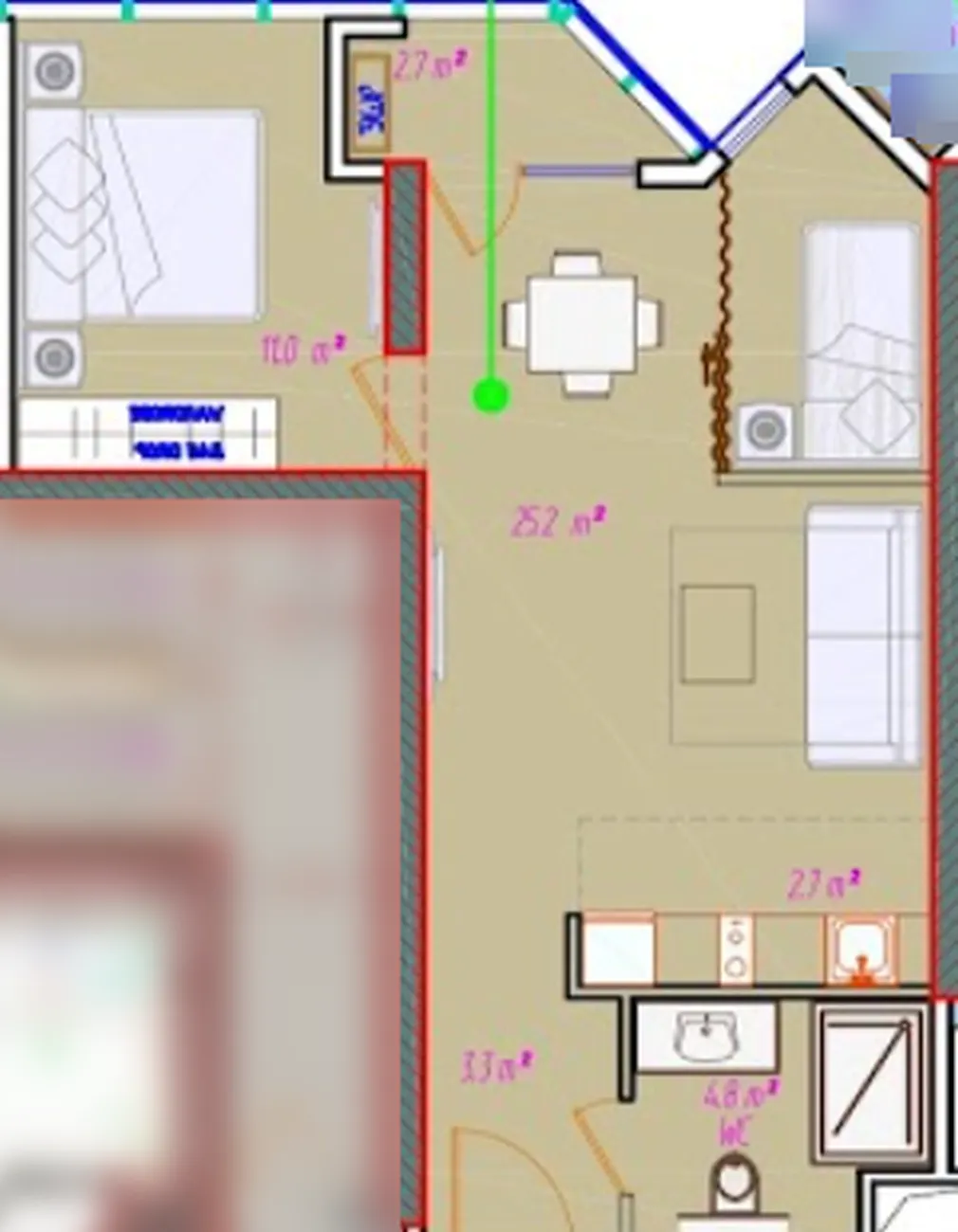 Geräumiger und heller Wohnraum mit der Möglichkeit einer klaren Unterteilung in Wohn- und Schlafzimmer. Eine private Terrasse von 2,7 m² ermöglicht es Ihnen, die frische Luft aus der Vogelperspektive zu genießen. Die Höhe der 29. Etage bietet Panoramalicht, absolute Privatsphäre und eine faszinierende Perspektive, die ein Gefühl der Schwerelosigkeit und eine Pause von der Hektik der Stadt schafft.