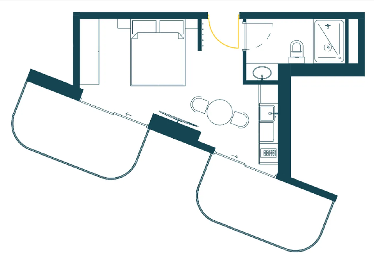 Typ: geräumiges Studio mit einzigartiger Aufteilung