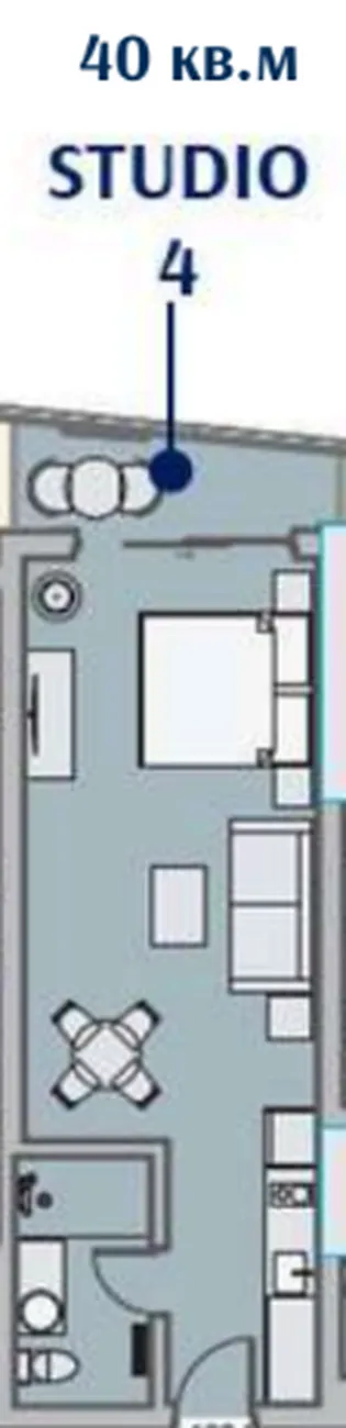 A studio with a clever open-plan layout: the bedroom, living room and kitchen areas are harmoniously combined, creating a feeling of spaciousness and cosiness. The balcony is a nice bonus for morning coffee or evening relaxation. Large windows fill the space with light, and the finish allows you to use the space for living or renting immediately.
