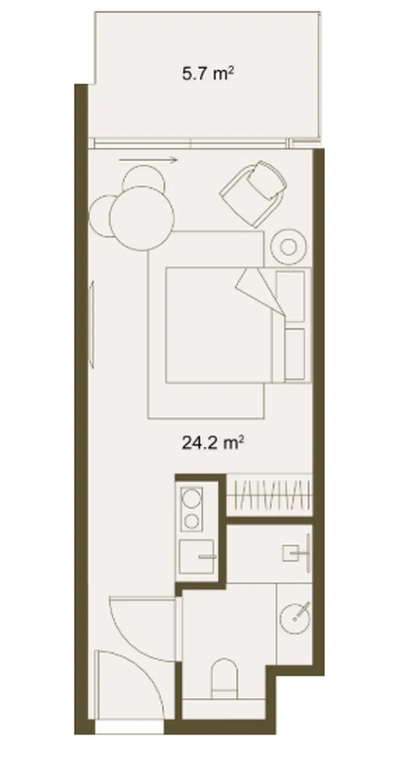Maximum yield per square metre: If properly designed, a studio of this size demonstrates one of the best ROIs due to high demand from budget travellers, solo travellers and digital nomads.