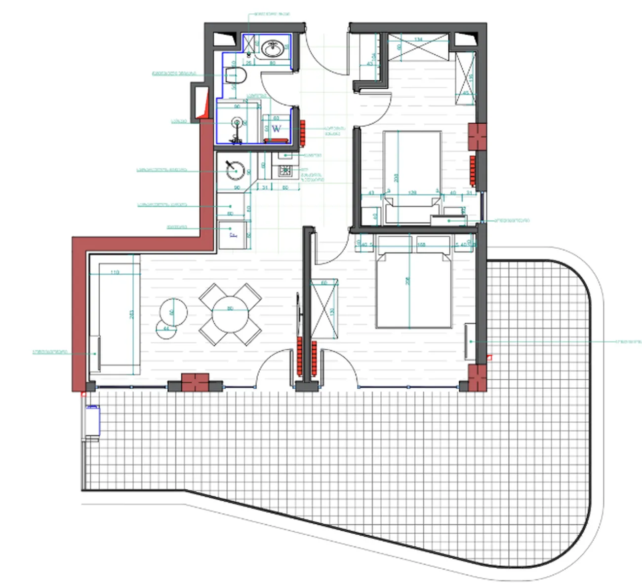 Two-bedroom apartment with terrace by the sea