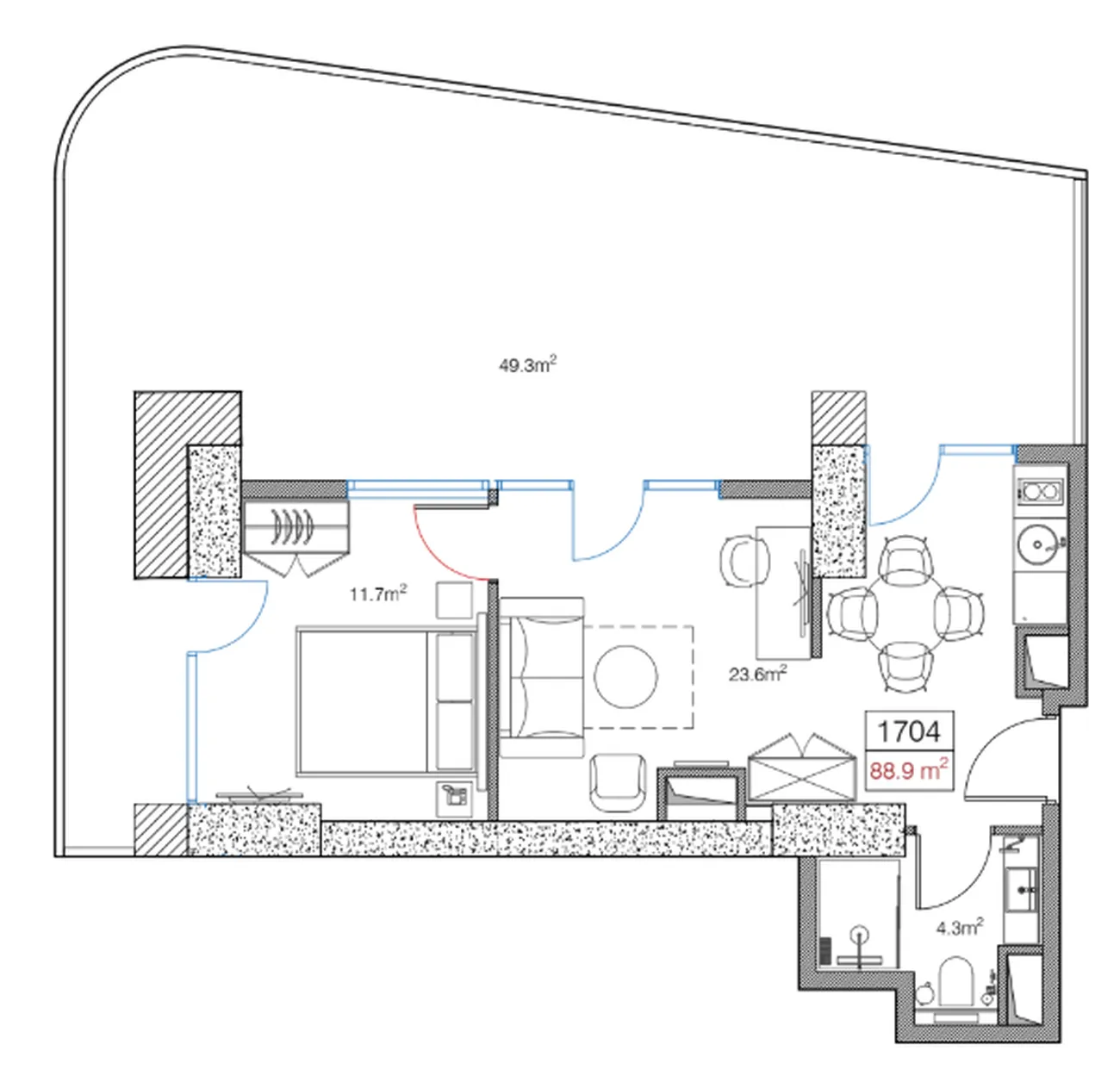 Spacious 1-room flat area 88.9 м² in a modern apartment complex Metropol Cube on Heroes' Alley in Batumi. Ideally located within walking distance to the sea and central walking areas.