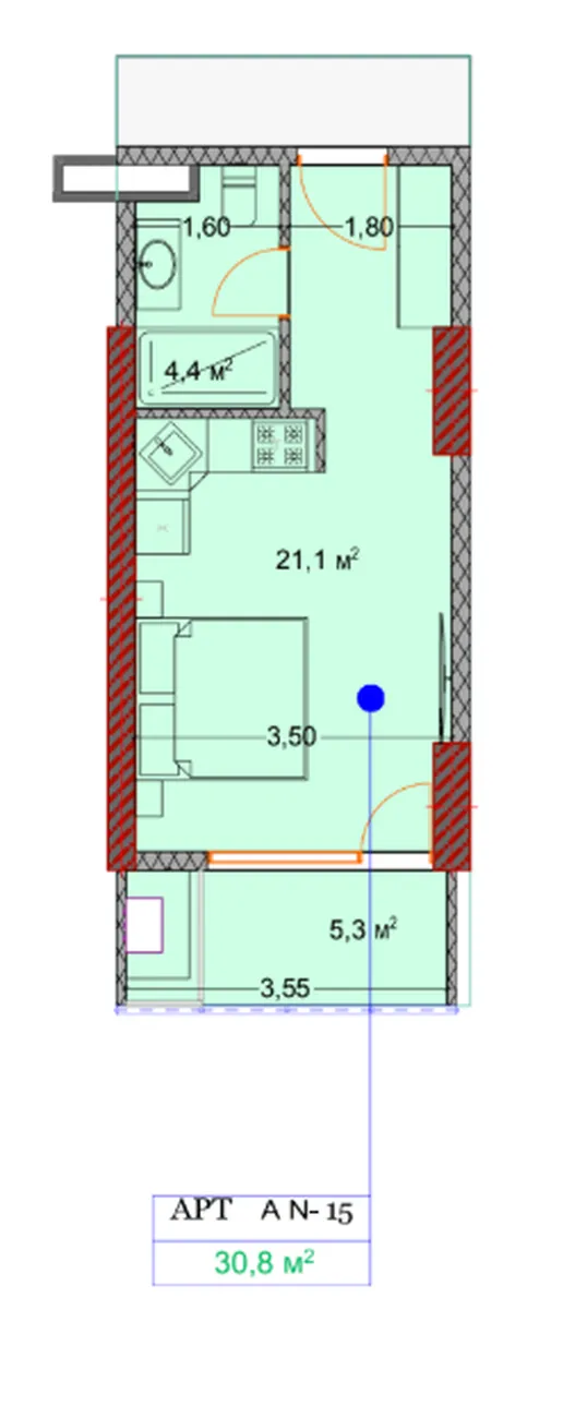 Spacious living room 21,1 м² combined with the kitchen area. Separate modern bathroom 4,4 м², comfortable hallway 3,50 м² and a bright balcony 5,3 м²The layout has been thought out to the last detail - it has everything you need for comfortable living. The layout has been thought out to the last detail - everything for a comfortable life is here.