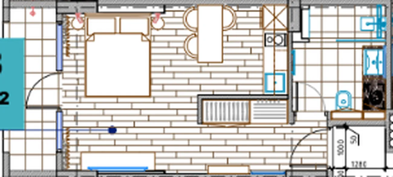 Spacious single space combining a cosy sleeping area, living room and modern kitchen. The flat is equipped with a balcony with beautiful sea views and a functional bathroom. The key advantages are a smart layout with a well-thought-out storage system (built-in wardrobe in the hallway), panoramic glazing that fills the space with light, and a high-quality turnkey finish.