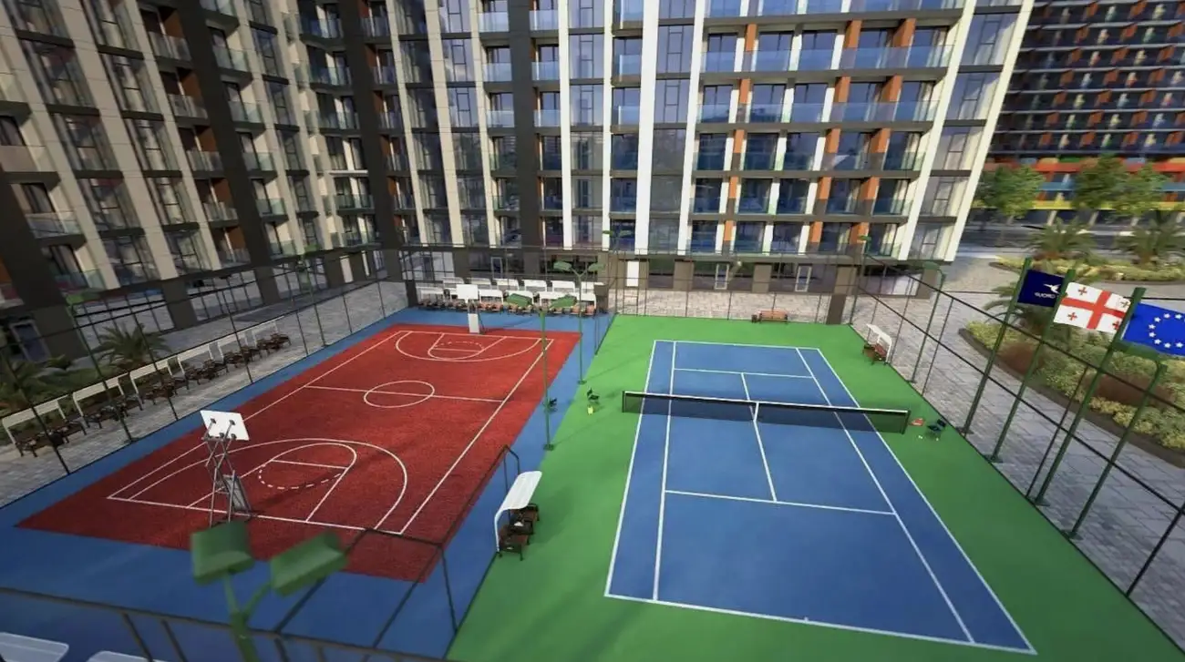 The 18-storey high complex was built using monolithic frame technology and modern engineering solutions. Residents will enjoy a landscaped courtyard with a tennis court, sports and children's playgrounds, recreation areas and greenery. The territory provides concierge service, security, video surveillance, high-speed lifts and underground parking.