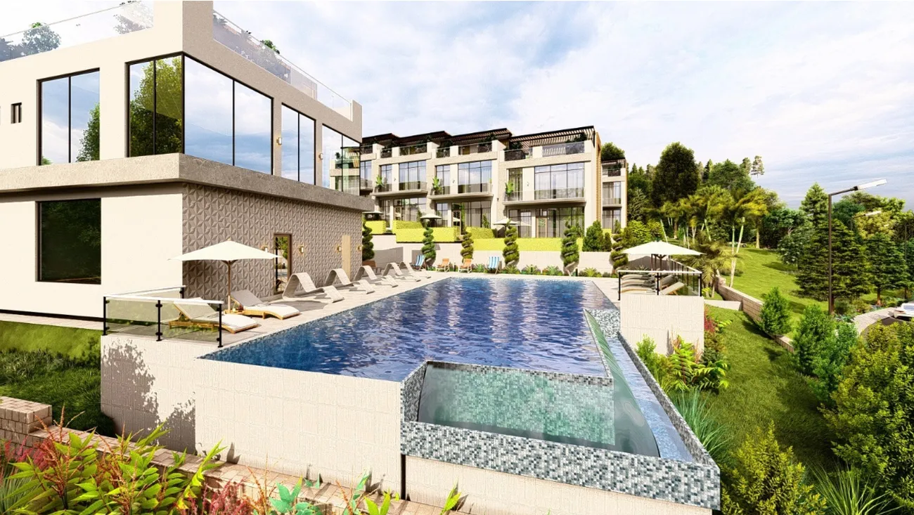 A poca distancia - supermercados, farmacias, parada de transporte a Batumi. El complejo está situado en la primera línea del mar, pero en una posición elevada, por lo que la casa tiene una vista, y el ruido del paseo marítimo no molesta. La casa tiene una entrada independiente, plaza de aparcamiento y seguridad las 24 horas. La infraestructura del complejo incluye una piscina infinita comunitaria con vistas al mar, saunas finlandesa y turca, un moderno gimnasio y una zona de barbacoa.