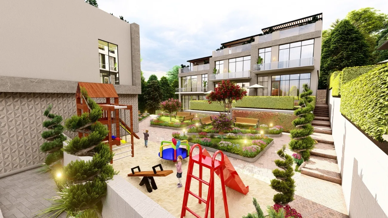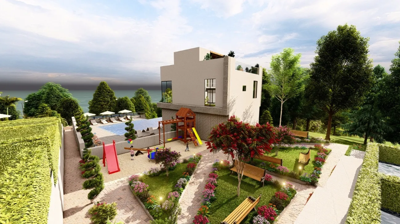 👨👩👧 Familias con niños - Amplias habitaciones aisladas, una piscina privada y una zona de juegos en la azotea dan libertad a los niños, mientras que la comunidad cerrada proporciona seguridad. Hay un jardín de infancia y una escuela en Kvariati cerca.