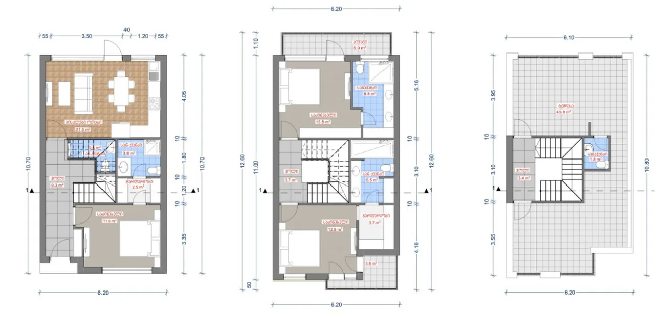 ✈️ Turistas - El formato "dos plantas + azotea" permite alquilar la casa con la máxima rentabilidad: cada dormitorio tiene su propio cuarto de baño y las zonas comunes impresionan a los huéspedes. La playa está a 5-7 minutos a pie, con cafeterías y las coloridas calles de Kvariati alrededor.
