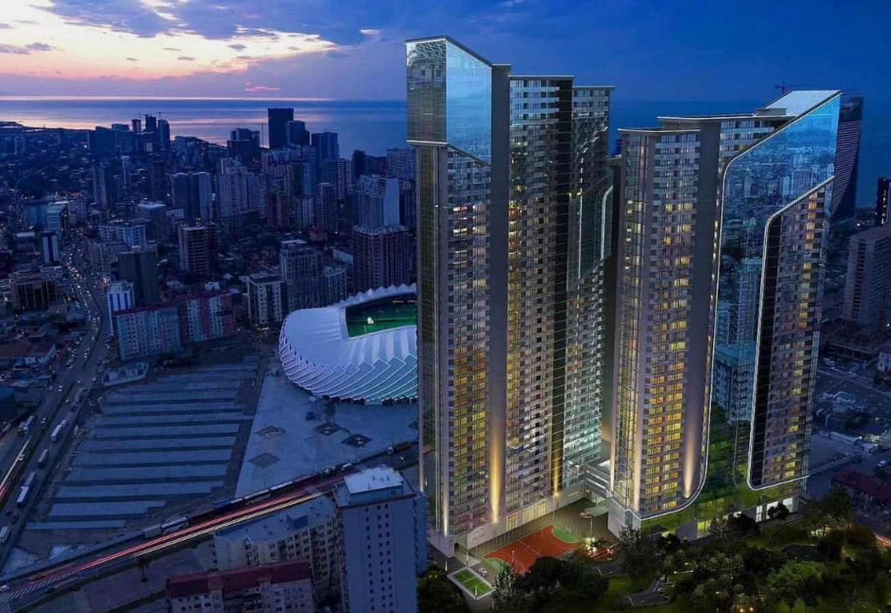 El piso está situado en la planta 34. El barrio de Alley of Heroes es uno de los más prestigiosos y bien equipados de Batumi, donde los mejores restaurantes, boutiques, el paseo marítimo y toda la infraestructura necesaria se encuentran a poca distancia.