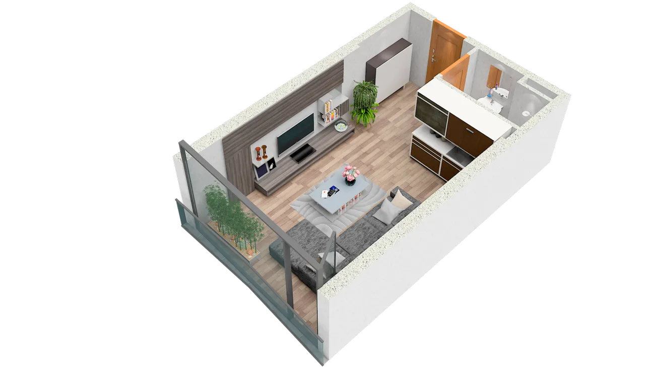 Espace ouvert pratique, combinant intelligemment le coin salon et la cuisine moderne. L'appartement est équipé d'un balcon. Les principaux avantages sont un espace économique qui ne nécessite pas d'importants coûts d'entretien, une rénovation élégante clé en main et un agencement efficace qui crée un sentiment de confort et d'ordre.