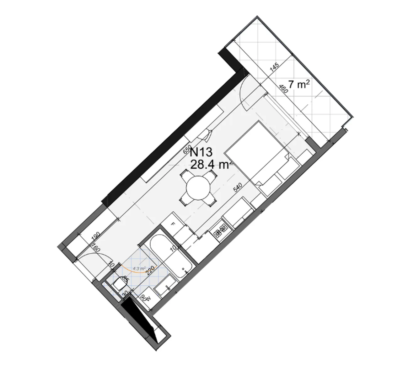 Il ne s'agit pas d'un simple studio, mais d'un espace moderne où la spacieuse terrasse de 7 m² joue un rôle majeur. Le grand balcon devient une extension naturelle de l'espace de vie, créant les conditions idéales pour se détendre, travailler à l'extérieur ou recevoir des invités avec vue sur la ville et la mer. Le vitrage panoramique remplit l'appartement de lumière, tandis que l'agencement ouvert permet de tirer le meilleur parti de chaque mètre.