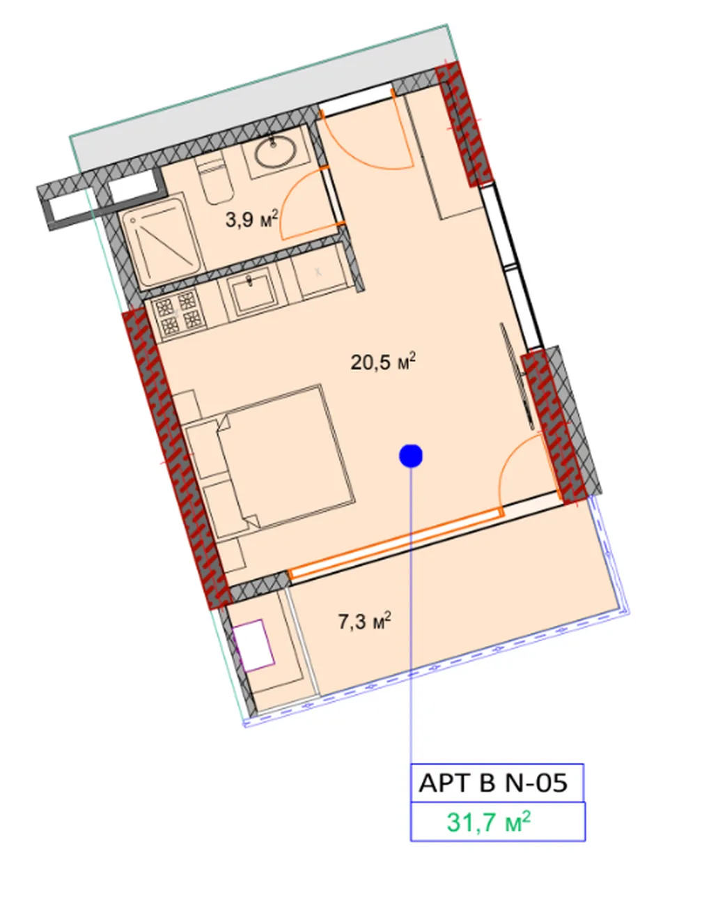 Studio moderne 31,7 м² dans un complexe d'appartements conceptuel OKTO Art House. L'agencement ergonomique et le grand balcon créent l'espace parfait pour vivre, créer et se détendre au bord de la mer.