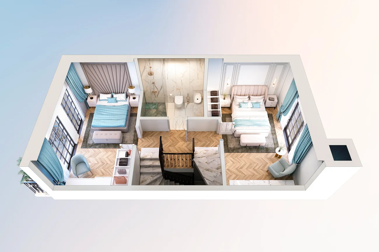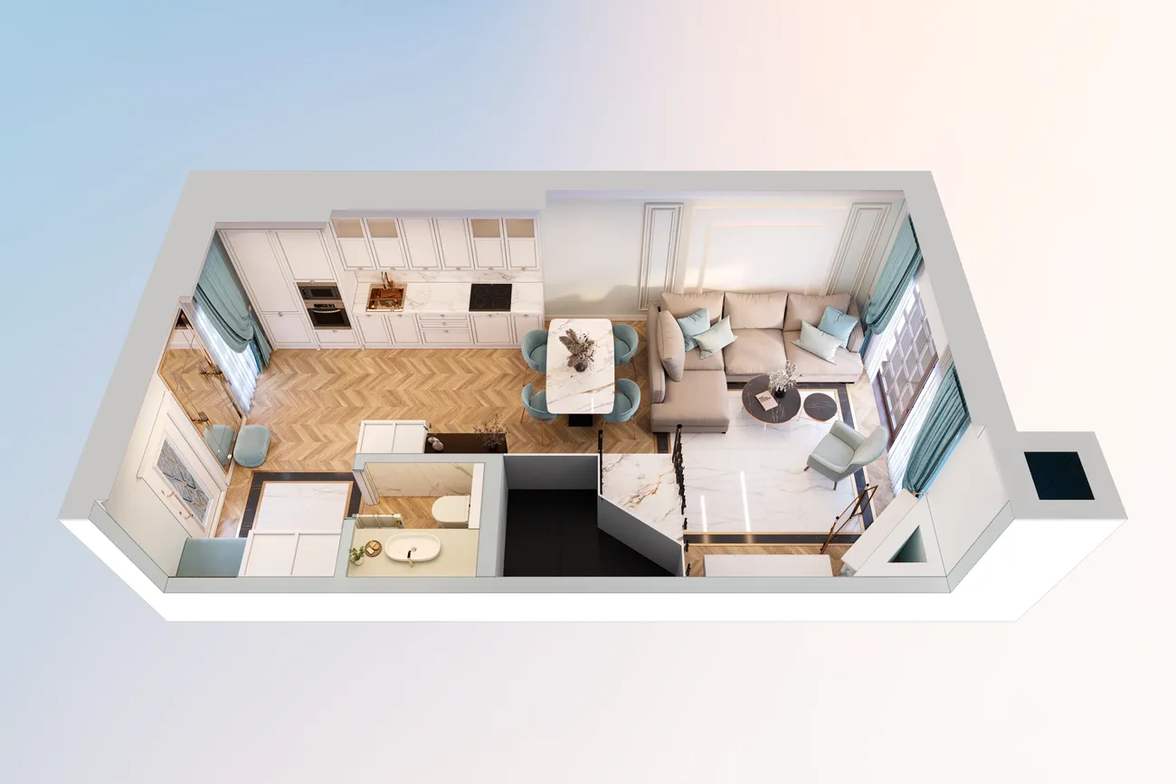 ✅ Familles avec enfants : La séparation des zones dans les étages assure l'intimité et le silence pour tous les membres de la famille. Le projet offre des infrastructures développées pour une vie confortable.