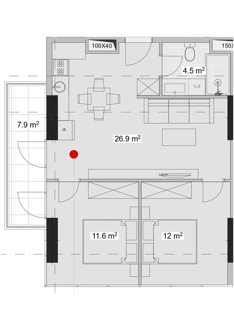 שני חדרי שינה מבודדים (12 מ"ר ו-11.6 מ"ר): מרחב פרטי למנוחה ללא פשרות, אידיאלי למשפחה או למשרד ביתי.