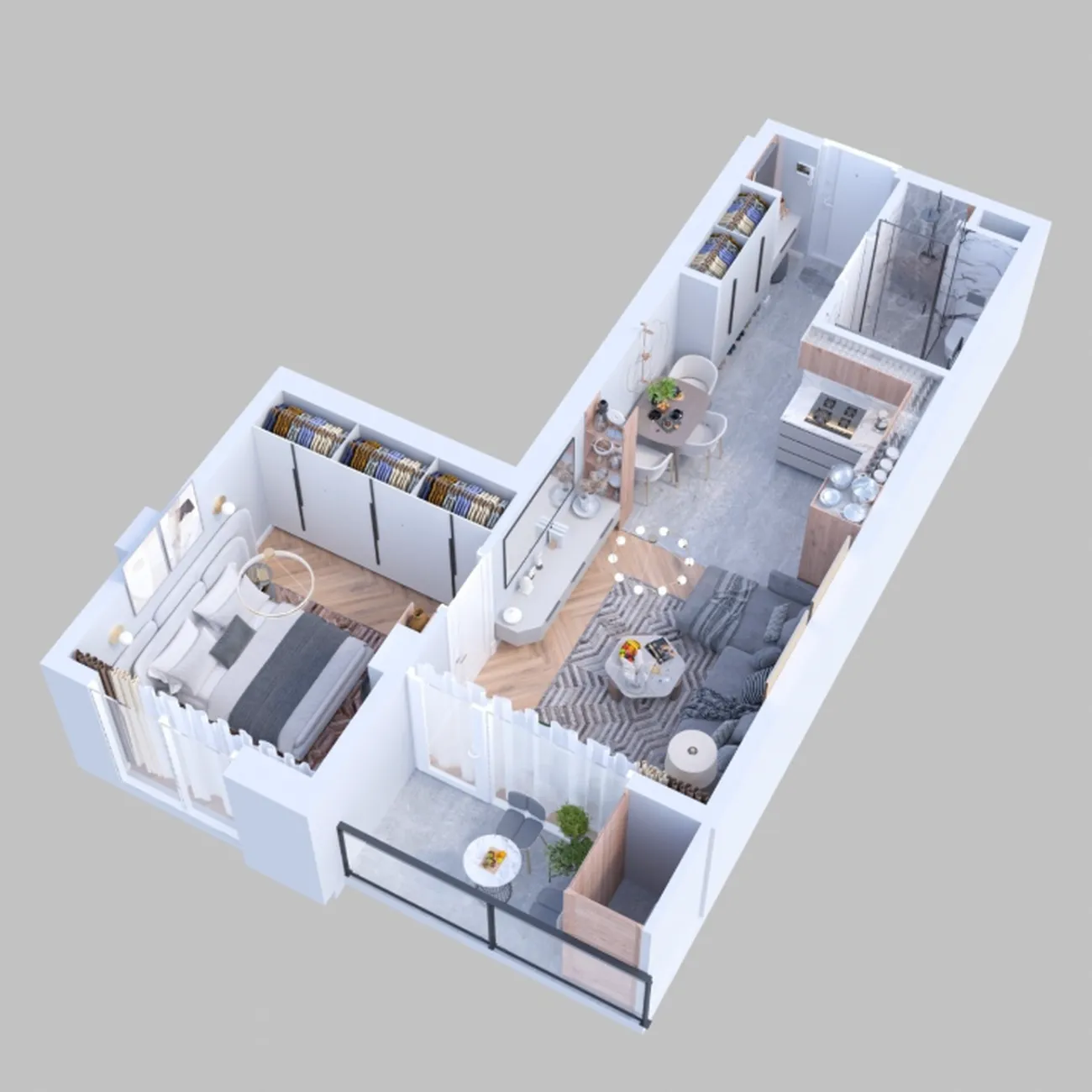 Infrastruttura del complesso: piscina all'aperto, centro fitness, bar, supermercato, sala giochi per bambini con tata professionale, parcheggio sotterraneo e di superficie, videosorveglianza 24 ore su 24, 7 giorni su 7. Nelle vicinanze - fermate dei mezzi pubblici, argine, piste ciclabili. Il piano può essere specificato al momento della prenotazione: le opzioni disponibili vanno dal 5° al 15° piano.