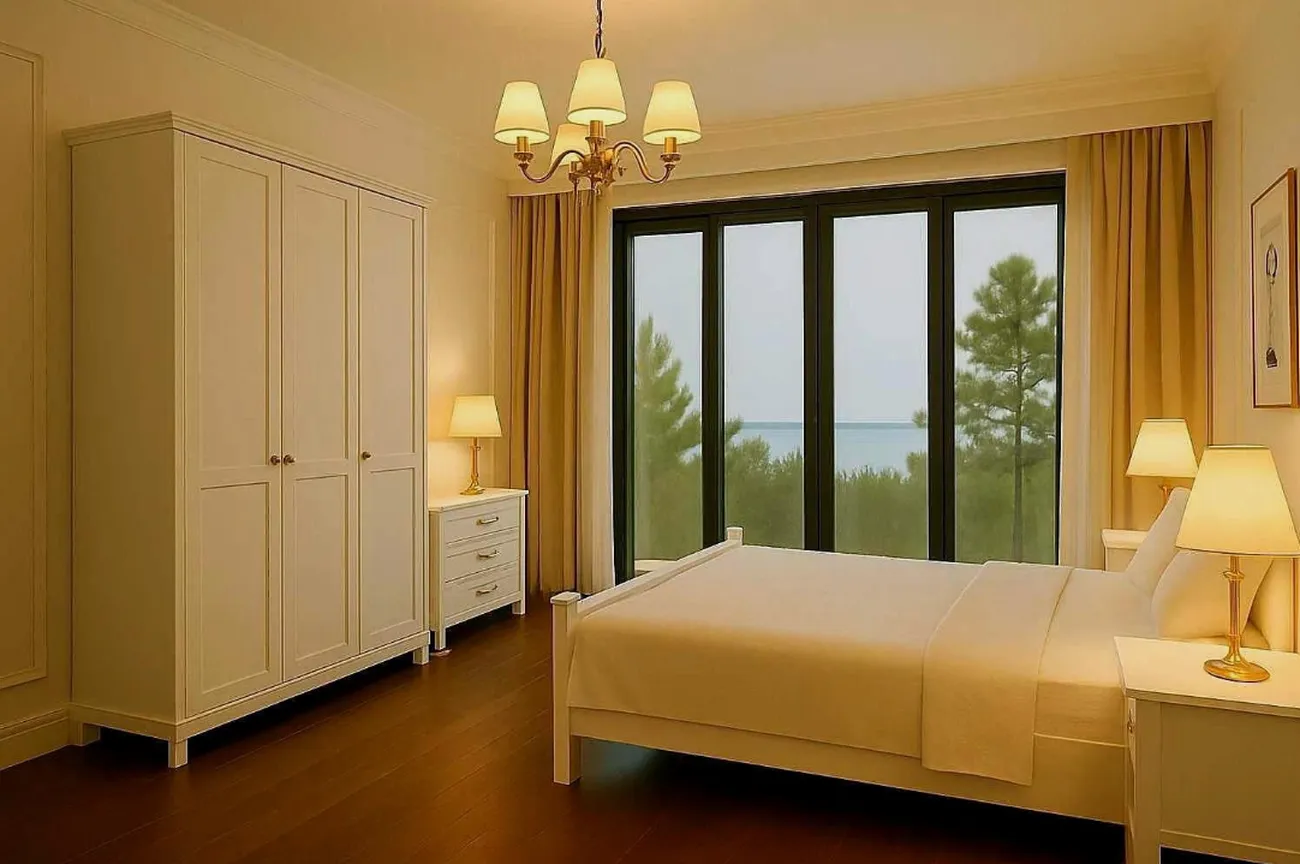 A vostra disposizione - camera da letto separata, изолированная от гостиной, что даёт настоящую приватность. Просторная гостиная объединена с кухней — идеальное пространство для семейных ужинов и встреч с друзьями. Раздельный санузел, просторная прихожая с местом под гардеробную, а также балкон-лоджия, где можно устроить зону отдыха. Высокие потолки и панорамные окна наполняют квартиру светом, а из окон открываются виды на сосновый лес или морские дали. В доме — скоростные лифты, наземный паркинг, видеонаблюдение 24/7. Приватная закрытая территория с зонами отдыха создаёт атмосферу уединённого курортного образа жизни.