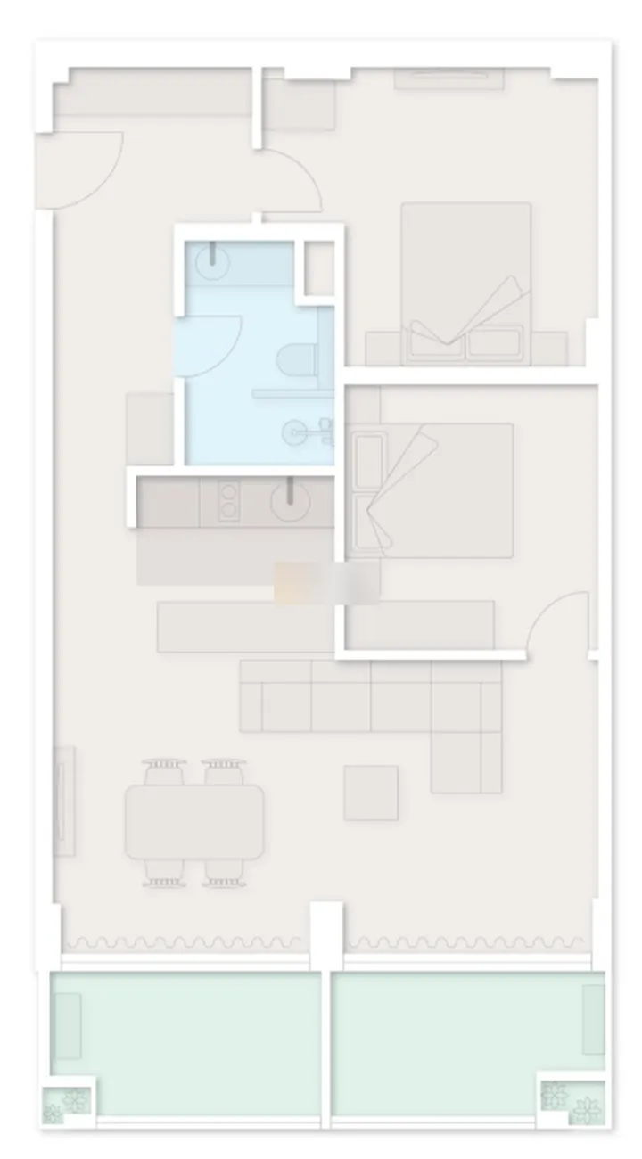 Una disposizione intelligente con due camere da letto isolate e una spaziosa cucina-soggiorno: uno spazio in cui ognuno trova il proprio angolo. Un bagno separato e una zona spogliatoio aggiungono comfort alla vita quotidiana. Il balcone diventa un'estensione del soggiorno: qui si può organizzare un posto accogliente per la colazione all'aria aperta o semplicemente godersi la vista del verde e della brezza marina. Le grandi finestre riempiono l'appartamento di luce e la posizione in un complesso con un territorio chiuso e infrastrutture sviluppate dà una sensazione di comfort da località turistica per tutto l'anno.
