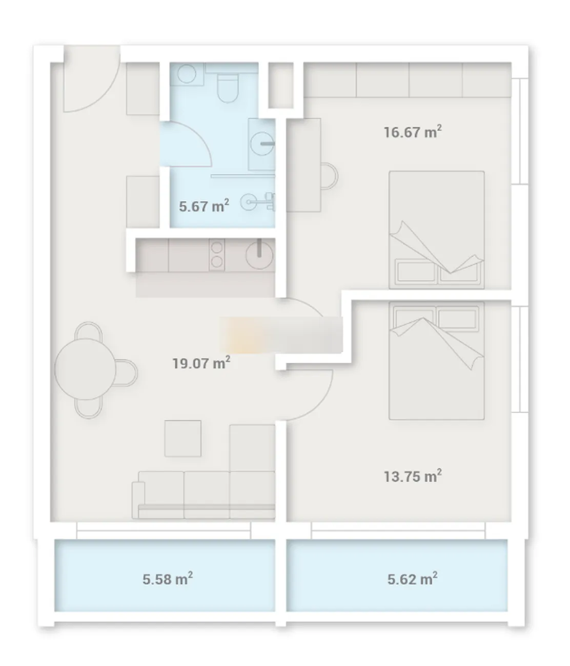 L'appartamento è stato progettato pensando a una vita familiare confortevole. Due camere da letto isolate offrono privacy per genitori e figli o per gli ospiti. Spaziose soggiornoLa cucina diventa il centro dell'intrattenimento familiare. Bagno separato - un plus importante per il comfort quotidiano. La particolarità di questo appartamento è due balconi separatiche può essere utilizzata come area per la colazione e come accogliente luogo di relax. Le finestre panoramiche riempiono gli interni di luce e la vista si apre sul verde o sul mare (a seconda della posizione). La tecnologia costruttiva a telaio monolitico garantisce resistenza sismica e durata nel tempo.