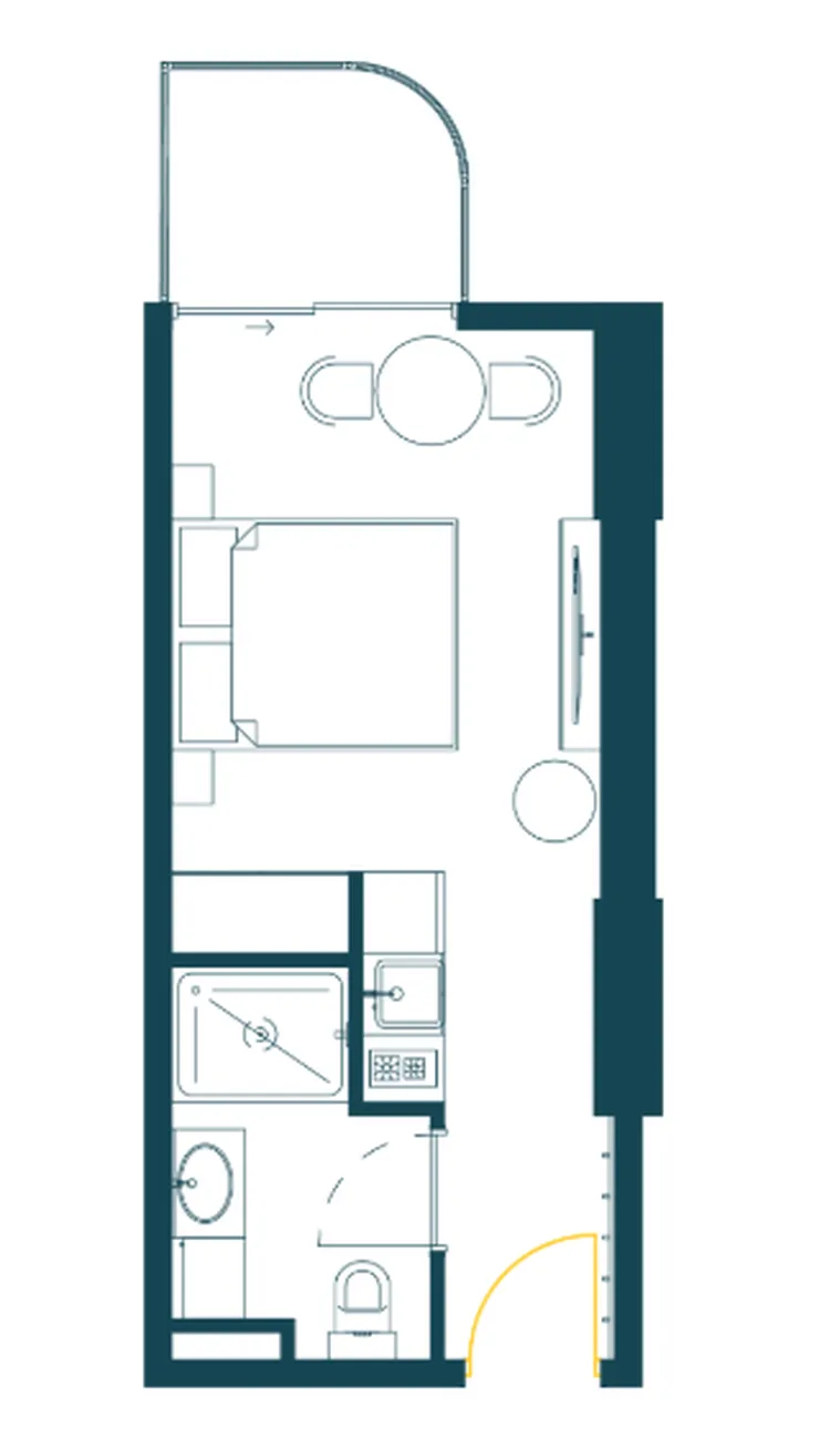 Тип: студия (функциональное пространство с зоной отдыха и кухни)
