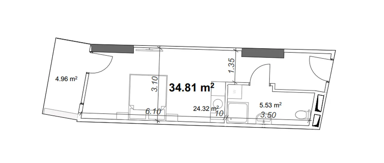 Удобное единое пространство (24,32 м²) с возможностью зонирования на спальную, гостиную и кухонную зоны. Раздельный санузел (5,53 м²) и компактный балкон создают всё необходимое для комфортного проживания. Большие окна наполняют помещение светом, делая его визуально просторнее и уютнее.