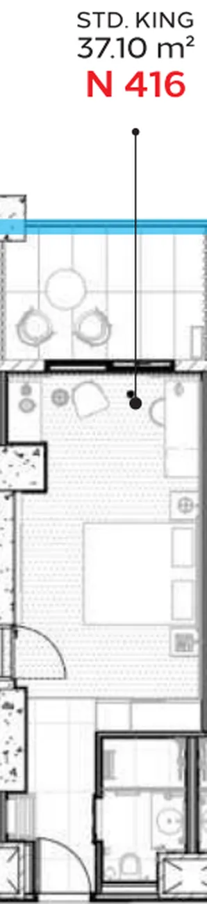 Студия с продуманной планировкой, где две отдельные односпальные кровати обеспечивают комфорт для двух человек, а объединенная гостиная и кухня создают простор для отдыха. Балкон добавляет приватности и служит приятным местом для утренних и вечерних посиделок. Большие окна наполняют помещение естественным светом, а современная отделка «под ключ» позволяет сразу начать использование.