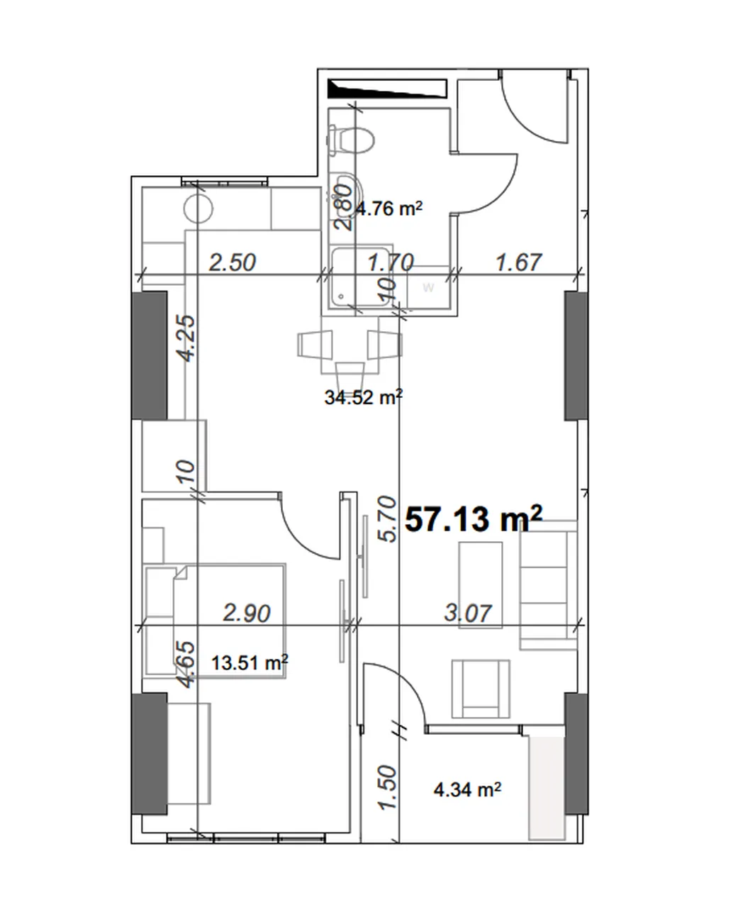Obszar: 57.13 м²