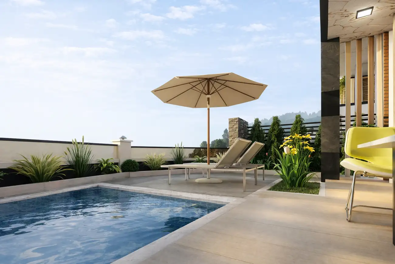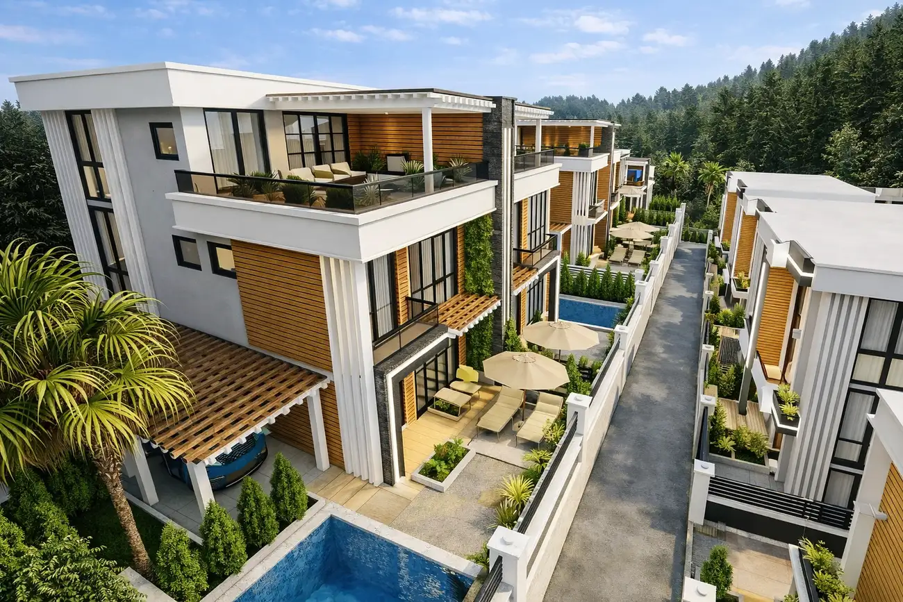 Каждая вилла площадью 180 м² продумана для комфортной жизни: просторная гостиная с кухней открытого типа, три спальни, два санузла и светлый open space с выходом на террасу. На собственной территории предусмотрены бассейн, зона отдыха и парковочное место. Дома передаются с дизайнерским ремонтом, полностью меблированы и укомплектованы техникой, а управляющая компания обеспечивает обслуживание и комфортную эксплуатацию комплекса.
