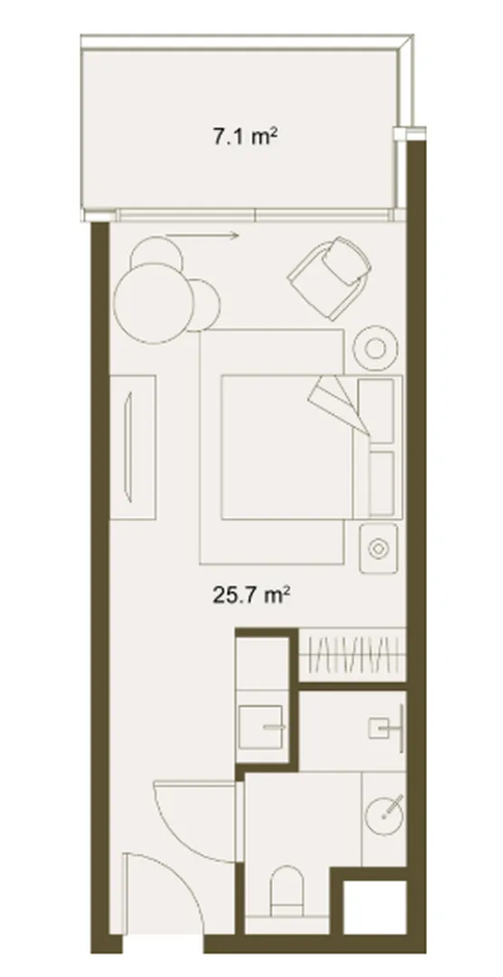 Yüksek likidite: Genişletilmiş açık alana sahip bu plandaki stüdyolar, bir veya iki kişi için (gezginler, çiftler, dijital göçebeler) kiralama pazarında en çok talep edilen üründür.