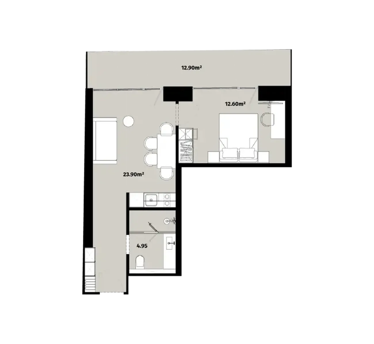 Daire şunları içerir izole yatak odası (12.60 m²)geniş oturma odası (22,90 m²) и ayrı banyo (4,95 m²). Bu özellik. geniş balkon (12,90 m²)Büyük pencereler iç mekanı ışıkla doldururken, uyumlu bölgelendirme özgürlük ve mahremiyet hissi yaratır. Büyük pencereler iç mekanı ışıkla doldururken, uyumlu bölgelendirme özgürlük ve mahremiyet hissi yaratır.
